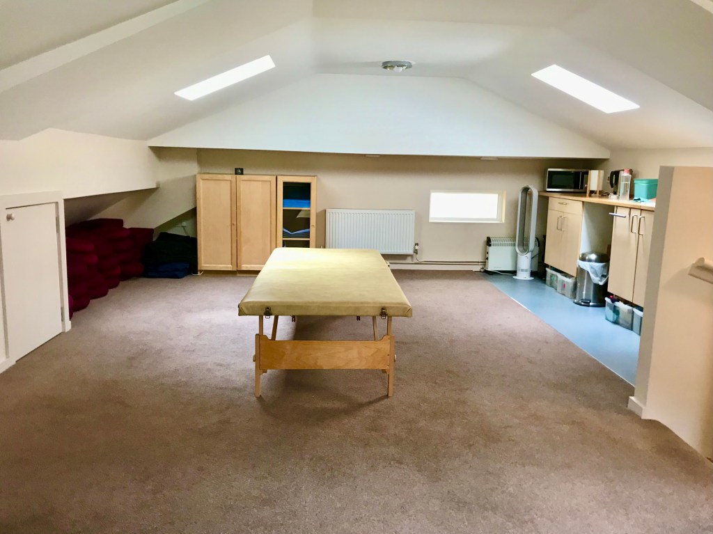 Lou works upstairs at the Yoga Point in Brixton, London. There is no lift and 13 steps up to the room.